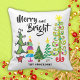 Feliz e Brilho em fonte divertida. Whimsical, árvores de Natal ilustradas no fundo, todas diferentes e únicas, mas todas igualmente divertidas! A cor de fundo do travesseiro pode ser facilmente alterada para atender às suas necessidades.