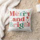 O texto do estilo retrô lê Feliz e Brilho neste travesseiro decorativo de Natal colorido.