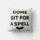 Este é um travesseiro "VENHA SENTAR-SE POR UMA VELOCIDADE DE Halloween. Feliz Dia das Bruxas Negra Negra e Branca Bat". É um travesseiro divertido para o Dia das Bruxas. Este é um caso personalizado de travesseiro de Feliz Dia das Bruxas.