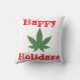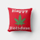 Feliz travesseiro decorativo de Natal. Personalizável e reversível. Grande folha verde de ervas daninhas com fundo vermelho e texto branco proclamando, "Feliz Natal" de um lado e fundo branco e texto vermelho do outro. Você pode personalizar ao seu gosto alterando a cor de fundo, o tipo de travesseiro, o texto ou a imagem.