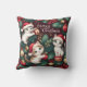 Este travesseiro de Natal é perfeito para amantes de gatos. Ele apresenta três gatinhos adoráveis vestindo chapéus de Papai Noel e brincando com ornamentos. O fundo é verde festivo com bagas vermelhas e sotaques de ouro. Este travesseiro trará um pouco de alegria e beleza para sua casa.