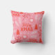 Esta travesseiro de Natal rosa, inspirada no retrô, é perfeita para o presente de Natal de uma criança ou para o Natal de 1rua de bebê. Este travesseiro de Natal bonito apresenta um fundo cor-de-rosa com texto numa fonte divertida que diz Merry XMAS. Os ornamentos em flocos de neve das árvores de Natal, e os sotaques botânicos em vermelho e branco completam este belo presente de Natal.