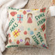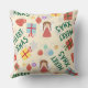 Texto de natal feliz, cor-de-rosa, com travesseiro decorativo de ornamentos presente e coloridos. A decoração de natal para crianças.