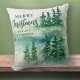 Feliz Natal, Travesseiro decorativo de Presente nas Florestas Verdes. Personalize este elegante travesseiro decorativo de Natal moderno com sua mensagem personalizada. Um presente perfeito para você, família e amigos.