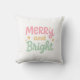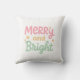 Travesseiro decorativo de Natal moderno, com um design bonito e divertido com "Feliz e Brilho" em letras gritantes, cor-de-rosa e verde casuais.