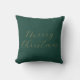 Um travesseiro decorativo de natal verde tradicional. Feliz Natal na frente com o nome dos destinatários na parte de trás. Para editar ou excluir o texto, clique no botão personalizar.