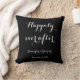 Esta bonito tipografia feliz para sempre após o travesseiro decorativo apresenta um fundo preto, mas você pode mudar o fundo para qualquer cor que quiser (apenas lembre-se de mudar o fundo do travesseiro também). Depois das palavras Feliz para sempre, seus nomes são impressos e sua data de casamento. Este é um presente de excelente para a noiva e o noivo ou um presente de excelente para você. Direitos autorais