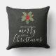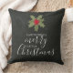 Na moda e festivo, este travesseiro é a maneira perfeita de adicionar alguma alegria de férias à sua casa. Apresenta um fundo de ardósia (quadro) em ambos os lados. Um holly vermelho e verde com texto branco e roteiro "Tenha um Natal Feliz."