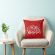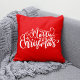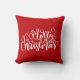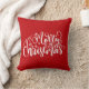 Travesseiro bonito no estilo de fazenda rural. "Feliz Natal" cita texto escrito como caligrafia. Localizar mais itens correspondentes na minha coleção "Natal em vermelho, azul e branco"