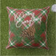 Um lindo padrão clássico de cheques escoceses vermelho, branco e verde com imagem sazonal de cones de pínus e agulhas, e uma Feliz clássica Tudo saudando o desejo que você pode personalizar ou personalizar ao seu gosto. Um design da temporada de dezembro para o designer externo, ou amante do estilo country de campo que adora temas de Natal de inverno. Almofada original moderna para decorar a varanda, o pátio ou o quintal sentados na sua cabine de tronco, na cabana, no lago ou nas férias do rio.