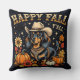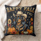Um pequeno cowboy Dachshund nas folhas do outono e abóboras. Com o Happy Fall Y'all no texto.