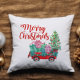 Travesseiro de Natal bonito e divertido, com um vagão vermelho cheio de presentes e uma Árvore de Natal com as palavras "Feliz Natal" na frente. Coordenando de volta, adicione seu nome de família, sua própria mensagem para trás ou deixe o vazio. Ver todo o nosso decoro de férias na nossa loja Zazzle!