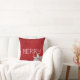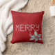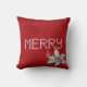 Texto de feliz com padrão de pontos cruzados e poinsettia e bagas de cor aquosa sobre fundo de textura vermelha.
