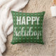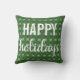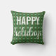 Almofada xadrez Felizes Festas. Várias tonalidades de folhas de azevinho verdes em um fundo verde escuro em um estilo xadrez. Felizes Festas está em branco em duas fontes. Para um Natal rústico e clássico!