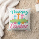 Um belo travesseiro decorativo Felz pascoa com bonito cola pastel e cor-de-rosa com uma bela fronteira floral em frente a cruzes cristãs. Uma design de Páscoa religiosa deslumbrante para uma igreja ou família religiosa.
