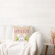 Este coelho branco fofo está a espreitar do buraco do coelho para lhe desejar uma Felz pascoa. No verso do travesseiro há uma vista de cheio, repetindo o padrão do coelho. A cor de fundo, um bege suave, pode ser personalizada.