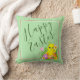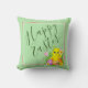 Acelere o seu decor de Primavera com travesseiro de Páscoa caprichosa. Este pintinho de bebê está rodeado por ovos coloridos de Páscoa e flores de primavera. Há pêssego e borda listrada branca em um fundo verde pastel suave. Na parte de trás do travesseiro há um padrão repetitivo com o pintinho bebê. A cor de fundo pode ser personalizada.