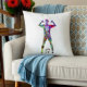 Decorative throw pillow featuring a vibrant watercolor silhouette of a female soccer player. This artistic and modern design brings energy and color to any living space.