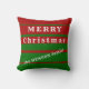 Travesseiro de Natal alegre e vermelho para tricô. Stripes em uma aparência de tricô e em cores vermelhas e verdes no feriado de Natal com texto personalizado - personalize com seu texto e faça um doce presente ou guarde no Natal.