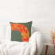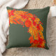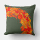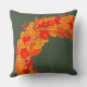 Travesseiro decorativo de Natal elegante. Ilustração brilhante de inverno com coroa decorativa de ramos de abeto, folhas, bagas e laranjas em fundo verde.