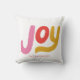 Adicione um toque na moda e festivo à sua casa com um travesseiro decorativo de feriado na moda. O travesseiro de Natal moderno apresenta "Alegria" em texto rosa, vermelho e dourado, com letra de mão. Personalize o travesseiro adicionando seu nome ou texto personalizado abaixo em um estilo de fonte vermelho. O travesseiro de feriado de alegria se inverte para um padrão pontilhado vermelho e branco. Projetado para coordenar com nossa coleção de feriados Colorida Moderna Alegria.