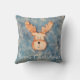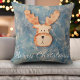 Travesseiro decorativo de Férias de Natal Azul, Cute Deer. Travesseiro de Natal com um veado giro e divertido no fundo azul do inverno. Feliz Natal é texto num roteiro branco - você pode mudá-lo ou apagá-lo. É um impressão de cabeça de cervo cortada de madeira em uma placa de madeira pintada.