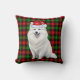 Um cão esquimó americano faz um belo travesseiro de Natal em seu chapéu vermelho de Papai Noel, e depois colado com uma xadrez vermelha e verde de feriado para iluminar a decoração de casa do amante de estimação.