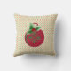 Travesseiro decorativo divertido para feriados apresenta um plano de fundo de padrão de bolinhas retroativo com grande ornamento brilhante vermelho e verde