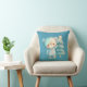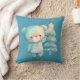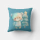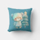 Travesseiro com uma ilustração adorável. Um urso aconchegante com estrelas e faíscas no pelo. Ao lado de uma árvore de Natal. Cor azul-esverdeada do Pastel. Whimsical e fofo.