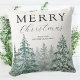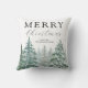 Personalize este maravilhoso travesseiro de feriado elegante com seu nome de família ou citação de feriado favorita. Design apresenta belos pinheiros de floresta aquática com pano de fundo de inverno. Fácil de personalizar. Feliz Feriados!