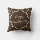 Uma grinalda esboçada mão cerca o Feliz Natal do texto. A folha botânica das folhas e os ramos cercam a grinalda. A cor do fundo é marrom. O outro lado diz a acção de graças feliz, você pode personalizar um ou outro lado com seu próprio texto. Estes os travesseiros home do acento da decoração são grandes para um tema rústico.