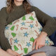 Esta design apresenta um travesseiro decorativo de Natal bonitinho e divertido, com recortes festivos de biscoitos de Natal, cores verdes e azuis, padrões de Natal coloridos, estrelas de árvore de Natal canaviais, decoração de natal de Natal, mínimo criativo e simples minimalista, almofada de Natal adorável, padrão listrado creme e cor-d'água, biscoitos de Natal bonitos