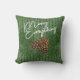 Linda luz clássica e abstrato verde-escura agulhas zigzag padrão chevron com imagem sazonal de pínus cones e agulhas, e uma Feliz divertida clássica Tudo saudando desejo que você pode personalizar ou personalizar de acordo com seu gosto. Um design da temporada de dezembro para o designer externo, ou amante do estilo country de campo que adora temas de Natal de inverno. Almofada original moderna para decorar a varanda, o pátio ou o quintal sentados na sua cabine de tronco, na cabana, no lago ou nas férias do rio.