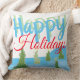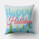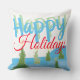 Feliz travesseiro de feriados com árvores. As cores são vermelhas, azuis e verdes. O texto pode ser personalizado para qualquer mensagem.