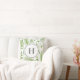 Travesseiro monograma com ilustrações de aquarela de fermes verdes e de padrão de eucalipto. Personalize adicionando suas iniciais. Este travesseiro verde é perfeito para ser um presente personalizado. Itens correspondentes estão disponíveis.