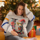 Bonita, Elfo de Natal em traje festivo com uma letra monográfica U decorada com decoração floral e um fundo de couro falso e bronzeado.