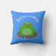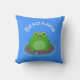 Este sapo verde giro e feliz sentado em uma almofada de lírio roxa é brilhante e adorável. Muita diversão anfíbia desenhada no estilo de animação feliz.