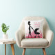 Este travesseiro foi projetado com um padrão de metrópole rosa com uma silhueta de uma mãe empurrando um carrinho através de um horizonte de cidade cor-de-rosa, tanto frente quanto atrás, e pode ser personalizado com um nome e data. Faz um presente de excelente para qualquer um com uma nova menina! Travesseiro adorável para um viveiro.