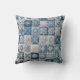 Uma colcha apresenta padrões intrincados como flocos de neve, cada um com designs únicos, azuis e brancos