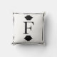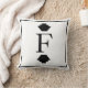 A arte deco inspirou travesseiro decorativo de monograma branco e preto para as finais. A parte de trás tem um preto com design de linhas.