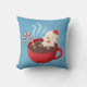 Adicione uma vibração de Natal com este travesseiro decorativo bonito em vermelho, branco e azul. A ilustração apresenta um bonitinho bonitinho que está tomando um mergulho relaxante na xícara de chocolate quente de cacau como se fosse uma banheira quente. Mas está derretendo como um marshmallow junto com a cana-doce.