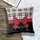 Este design de produto apresenta uma faixa vermelha ilustrada e um padrão de xadrez tartana em preto, branco e vermelho. Com seus gráficos clássicos exclusivos, ele faz um travesseiro decorativo moderno com texto personalizado.
