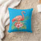 Almofada Flamingo de Aquarela e Flores de Hibiscus