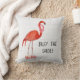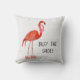 Flamingo rosa vestindo um lei de flores e saltos altos em madeira branca Texto é editável.
