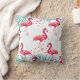 Almofada Flamingo tropical e folhas, padrão de verão.