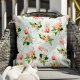 Junte este travesseiro do paraíso tropical à decoração ao ar livre de verão, apresentando um padrão colorido de aquarela de flamingos cor-de-rosa e flores tropicais no fundo das folhas de palma.