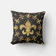 Almofada Fleur-de-lis - ornamento circular - Dourado e pret