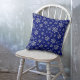 Este travesseiro de Férias bonito apresenta um padrão de falso brilho prateado em falso plano de neve em fundo azul escuro. Belo e elegante decoro para a temporada de Férias, e assim por diante durante todo o inverno. Ambos os lados do travesseiro têm a mesma imagem. *Observe que a imagem está impressa e não contém brilho.*