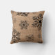 Um travesseiro decorativo rústico do feriado com um impressão de serapilheira e uns flocos de neve festivos no preto para uma decoração home sazonal à moda para o Natal.