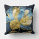 Um travesseiro decorativo floral, ousado e contemporâneo, com uma grande flor estilizada em tons de azul profundo, ouro e branco suave. O detalhamento texturizado, em forma de folha, nas pétalas e folhas dá à peça um efeito misturador metálico, criando uma estética moderna e luxuosa. Em relação a um fundo rico em marinhos, este design abstrato destaca a beleza da cor, textura e forma, fazer-o como uma peça de declaração atraente para qualquer estilo.